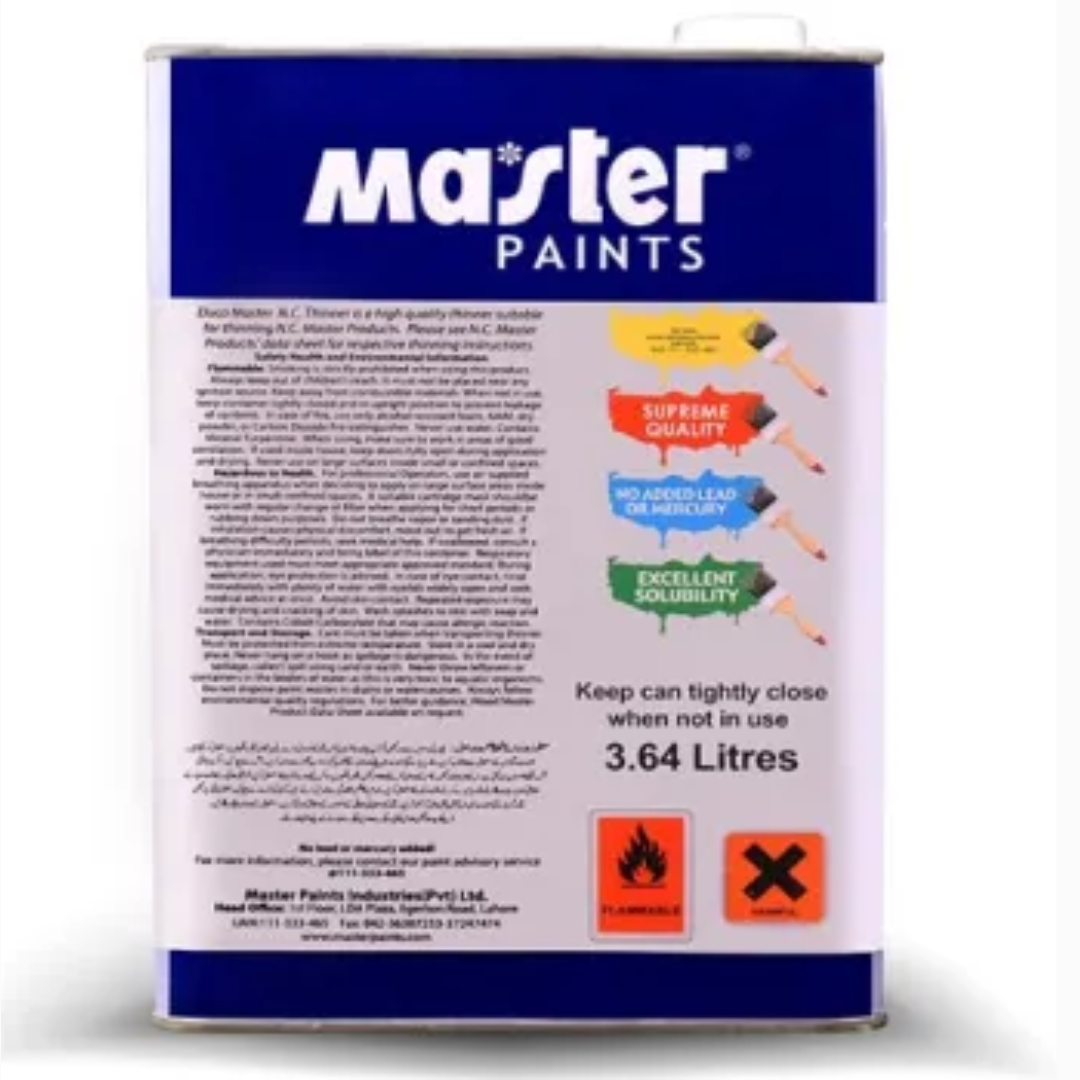 Our best NC thinner car paint is a high-performance solvent-based product that effectively dilutes lacquer paints, automotive finishes, and wood polishers. You can use it with NC types of car paints and automotive finishes like primers, fillers, sealers, and base paints. This thinner helps in surface penetration and cleaning, so it is essential for every car painting project. It makes spraying easier by thickening the paint for better flow. The NC thinner car paint in Pakistan is formulated to maintain the original qualities of the paint. Meaning, Master NC Thinner improves gloss, drying time, and overall finish. Buy Master NC thinner paint online in Pakistan at an affordable price.